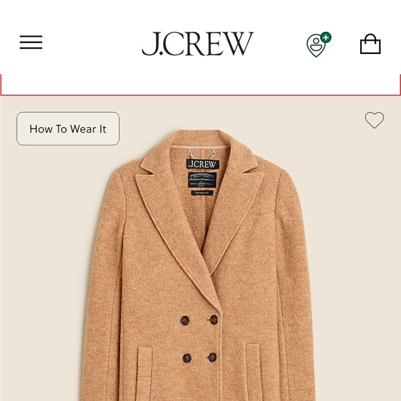J. Crew Women's Camel Double-Breasted boiled Italian wool plus size (20) coat