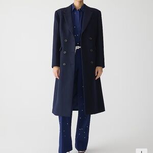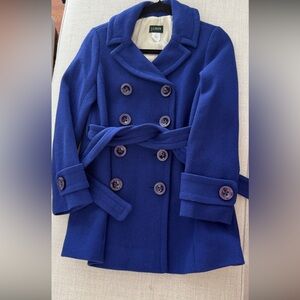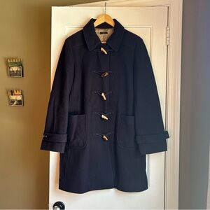 Chic camel pea coat by J. Crew. Features a classic design with a high collar. Ideal for layering in cooler weather.