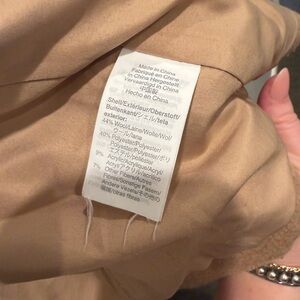 Chic camel trench coat by J. Crew. Timeless design with a sleek silhouette. Ideal for layering in cooler weather. This is a preloved item in good condition. No rips or tears but signs of wear. Please see photos. Size 8. Front pockets. About 19inches pit to pit. About 27 inches from shoulder to hem.