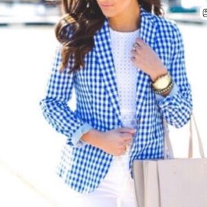 Stylish blue gingham blazer by J. Crew. Perfect for a polished look. Linen/cotton blend. Like new. Immaculate condition.