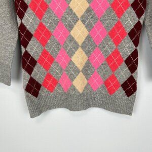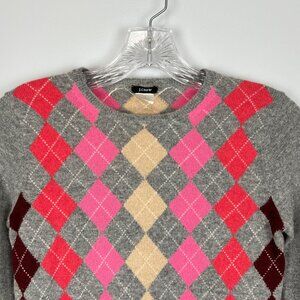J Crew Womens Cashmere Argyle Crew Neck Sweater Gray Pink Red size XS