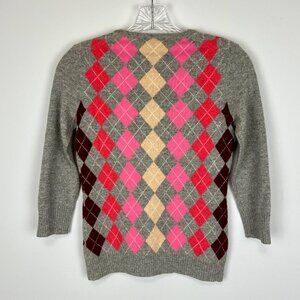 J. Crew gray cashmere 3/4 sleeve crew neck argyle sweater