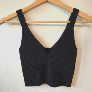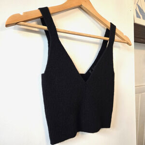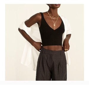 J Crew Womens Cashmere Cropped Sweater Tank Top Small Black Rib Knit Minimalist