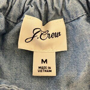 This listing is for pre-owned, in good condition, J. Crew Womens Chambray Peasant Top M Short Sleeve Tie Neck Blouse Cottagecore