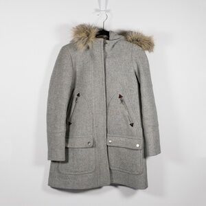 J. Crew Women's Chateau Stadium Cloth Wool Felt Faux Vegan Fur Hood Jacket Coat