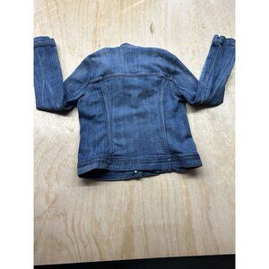 J.Crew denim jacket, women’s jean jacket, stretch denim jacket, J.Crew classic jacket, button front jean jacket, medium wash denim, casual outerwear, trucker jacket, small denim jacket