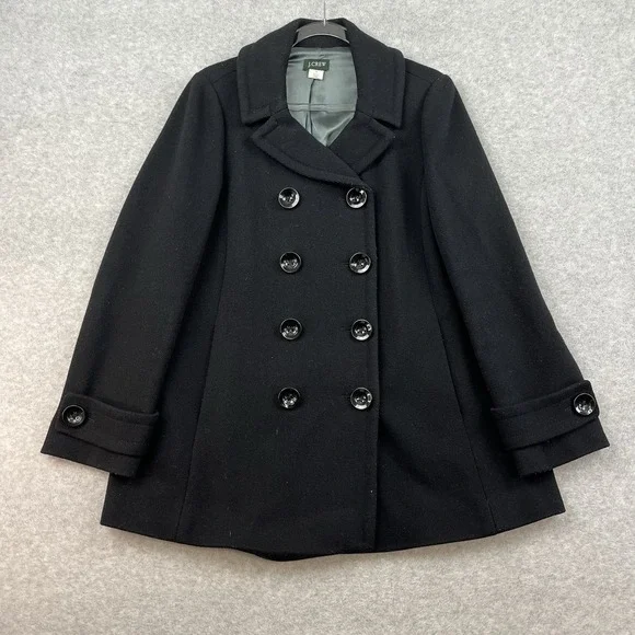 J. Crew Women's Coat Double Breasted Pea Coat Wool Size 12 Black Jacket