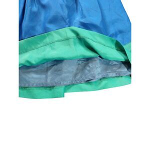 This J. Crew women’s skirt in size 2 features a bold colorblock design in cobalt blue with a vibrant green hem. The pleated silhouette and above-the-knee length give it a classic yet preppy style, perfect for work, casual outings, or dressy occasions.