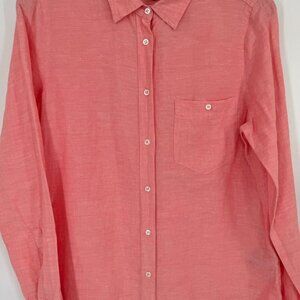 J. Crew Womens Coral Button-Up Shirt top tunic Size 8 Linen Blend long sleeve