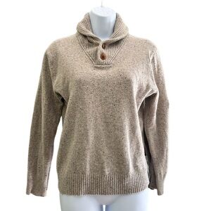 J. Crew Women’s Cozy Tan Merino Wool Sweater with Button Collar