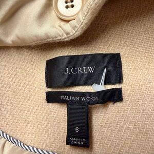 Chic cream pea coat with toggle closures. Classic design by J. Crew. Ideal for cool weather.Italian wool duffel coat with detachable hood. In very good condition. Front pockets. Length from under arm to bottom is 21.5 inches. Sleeve 16.5 inches. Adorable cool weather jacket.