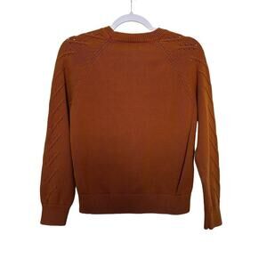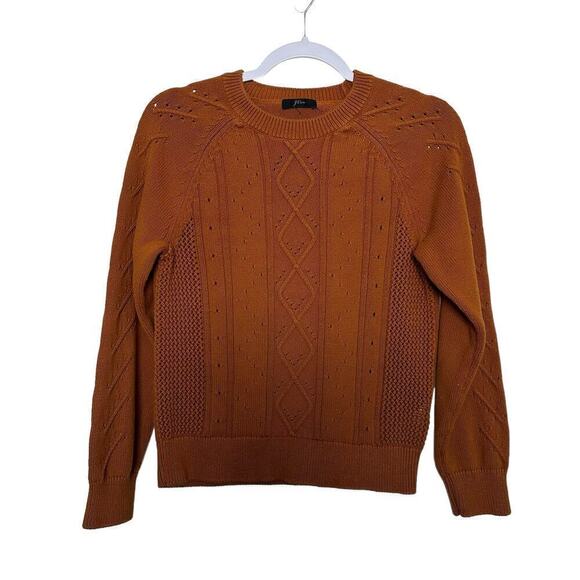 J. Crew Womens Crewneck Cable Pointelle Cotton Sweater SZ XS Burnt Orange Fitted