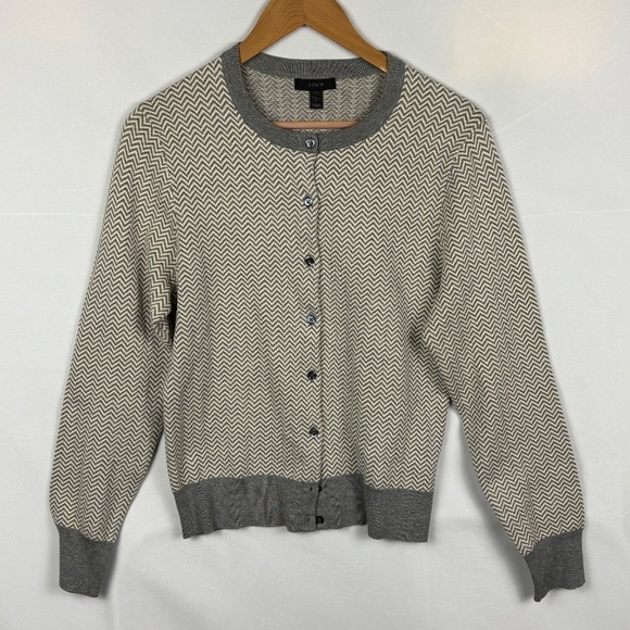 J. Crew Women’s Cropped Preppy Cardigan Sweater Sz L Button front Office Classic