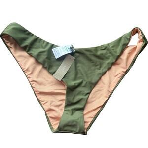 J. Crew Women's Curved-Waist Cheeky Bikini Bottom Olive Green Size L NWT