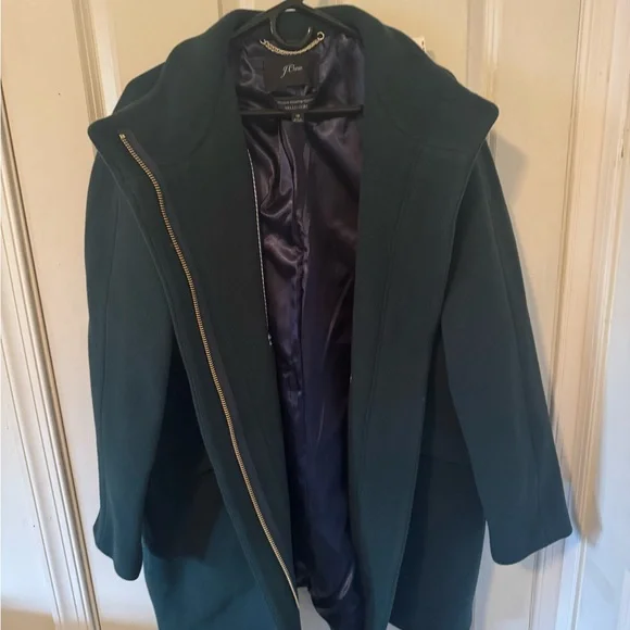 J. Crew Women’s Dark Green Pea Coat with Gold Zipper