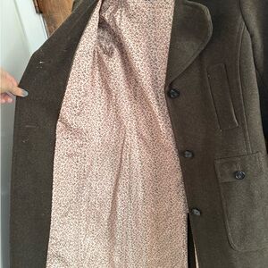 Chic dark brown trench coat by J. Crew. I’ve had this for awhile and is not a bit too small.