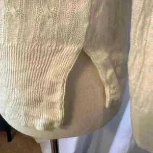 J. Crew Womens Deep V-Neck Cable Knit Sweater Cream Linen Size Medium. Side Slit