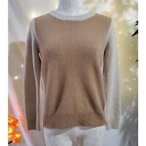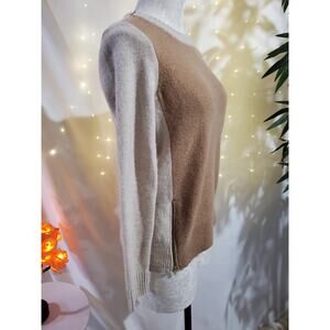 J. Crew Womens Double Zip 100% Wool Neutral Tan Colorblock Knit Sweater Size S