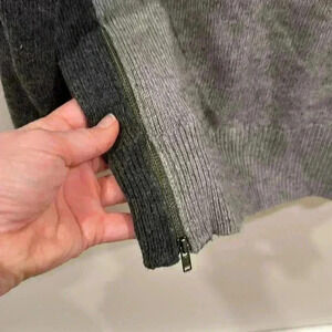 J. Crew Women’s Double Zip Merino Wool Blend Crewneck Sweater Black Gray Size S