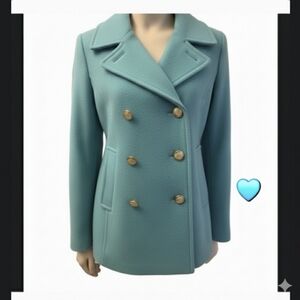 J. Crew Women's Double-Breasted Aquamarine Blue Pea Coat