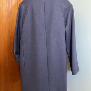 Chic and cozy navy pea coat. Features double-breasted design. Ideal for versatile styling.