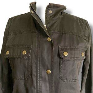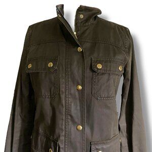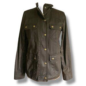 J Crew Womens Downtown Field Jacket Sz Small Olive Green Waxed Cotton Military