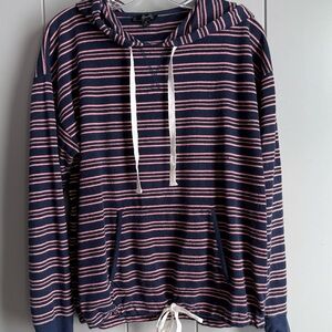 J. Crew Women's Drawstring Striped Hoodie M Navy Coral Style M