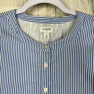 J. Crew Womens Dress S Blue Striped Stretch Cotton Poplin Tiered Button Front