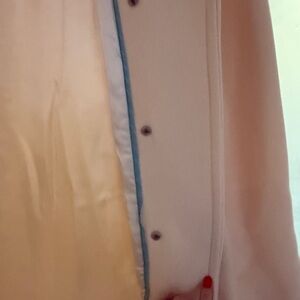 Good pre-owned condition. There are a few small, faint spots along the inner placket (shown in photos). They are subtle and do not affect wear, but priced accordingly and fully disclosed.