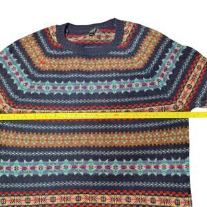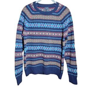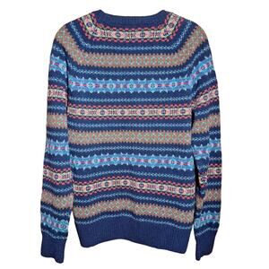 J. Crew Women's Fair Isle Wool Sweater Navy Colorful Knit crewneck 100% wool