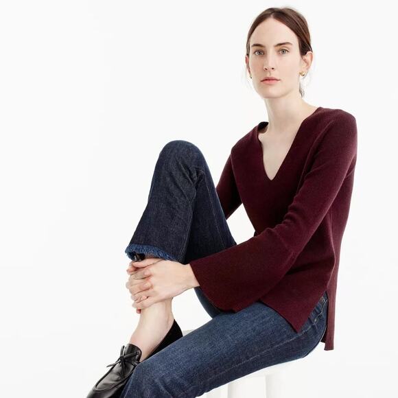 J. Crew Womens Fall Chic Peplum Flared Sleeve Wool Blend Sweater in Burgundy. Size Small.