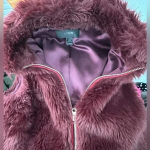 J. Crew | Women's Faux Fur Vest Vivid Burgundy / Red Wine Full Zipper Size XXS