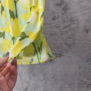 J Crew Womens Floral Crinkle Tissue Tunic Cover Up Top XL Yellow Green Cotton