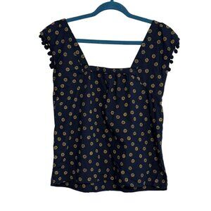 J. Crew Womens Floral PomPom Trim Cotton Blend Square Neck Top NavyYellow Size 4