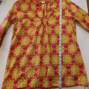 J Crew Women's Floral Tunic Pink And Green Top , Size M