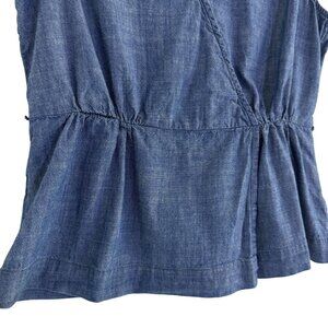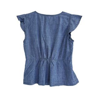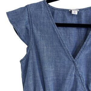 J. Crew Women's Flutter Sleeve Faux Wrap Chambray Blue Short Sleeve Top Size 6