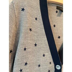 J. Crew Womens Gray Cardigan Sweater With Navy Star Pattern & Pockets - Size S