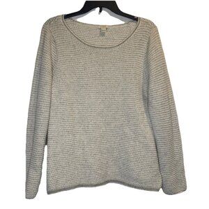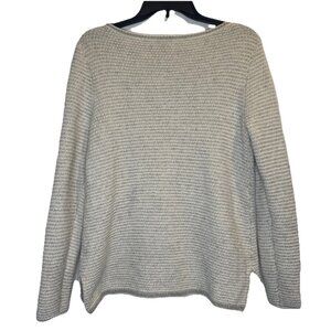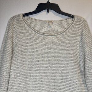 J. Crew Women’s Gray Striped Merino Wool Blend Crew Neck Sweater Top Sz Large