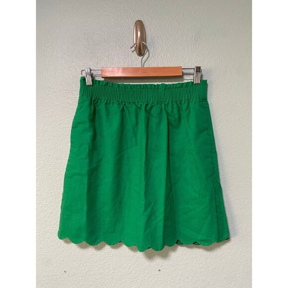 J Crew Women's Green Scalloped Linen Mini Skirt Size 6