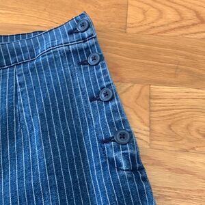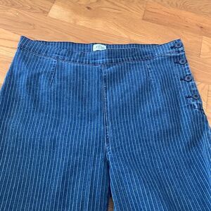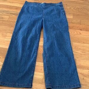 J Crew Womens High Rise Blue Striped Side Buttons Slim Wide Leg Jeans Size 32