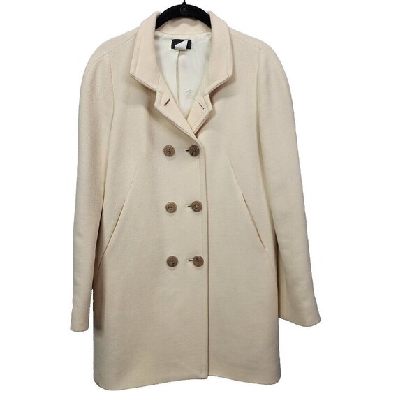 J Crew Women's Ivory Cream Wool Blend Double Breasted Peacoat Long Size 0