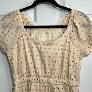 J. Crew Women’s Ivory & Red Embroidered Polka Dot DOBBY Dress - Size XXS. PTP: 16.5”. Length: 32”. Short sleeves and lined.