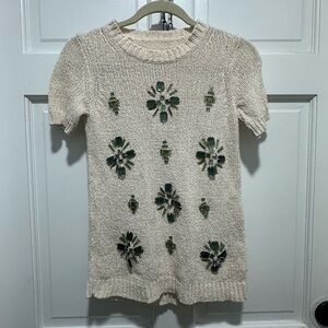 J. Crew Womens Jeweled Medallion Short Sleeve Sweater Linen Cotton Size XS
