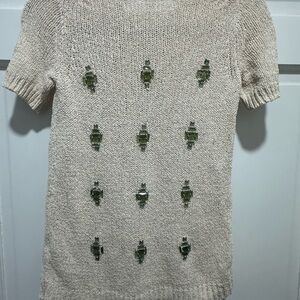 J. Crew Womens Jeweled Medallion Short Sleeve Sweater Linen Cotton Size XS
