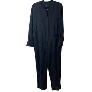 J. Crew Women's Jumpsuit Crepe Drapey Oxford Long Sleeve Black 12 Tall Office