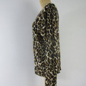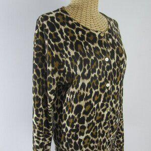 J Crew Womens L Brown Beige Cheetah Animal Print Merino Wool Cardigan Sweater