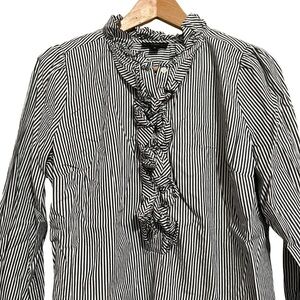 J. Crew Womens L Ruffle Front Classic Fit Boy Shirt In Stripe Black White Size M