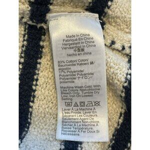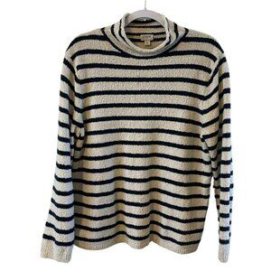 J Crew Womens L Sweater Ivory/Navy Blue Knit Striped Mock Neck Pull Over