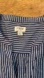 J Crew women’s size large blouse. Shirt features a 98/2 cotton/elastane blend material; navy/white thin stripe vertical pattern; long sleeves with banded tie cuffs; button front with collarless V neck; and front pocket on left chest. Beautiful nautical-esque blouse! Great used condition from a smoke free home. Refer to pictures for measurements.