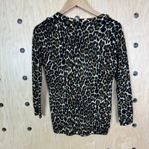 J. Crew Women’s Leopard Tippi Merino Wool Sweater Animal Print F5342 Size small - A customer-favorite since 2011 - The texture is soft and smooth to the touch, with a flattering, super-layerable fit you know and love. Ribbed cuff, hem and neck. 3/4 sleeve